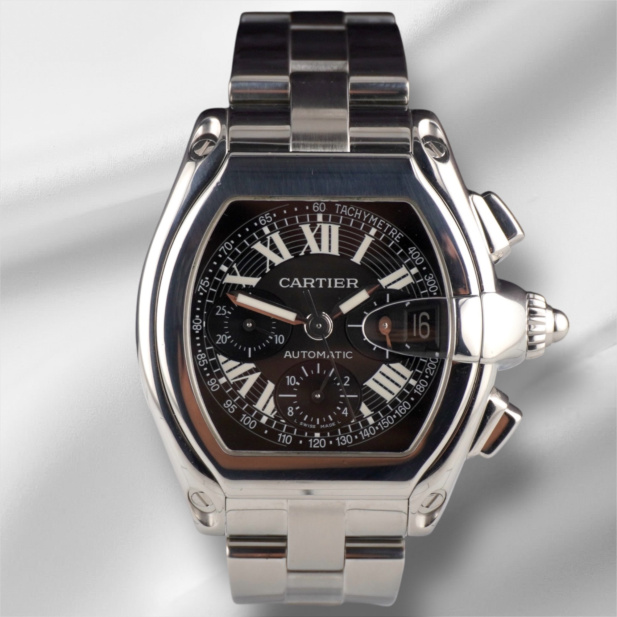 Cartier 43mm Roadster XL Chronograph Black Dial Steel Men's Watch 2618