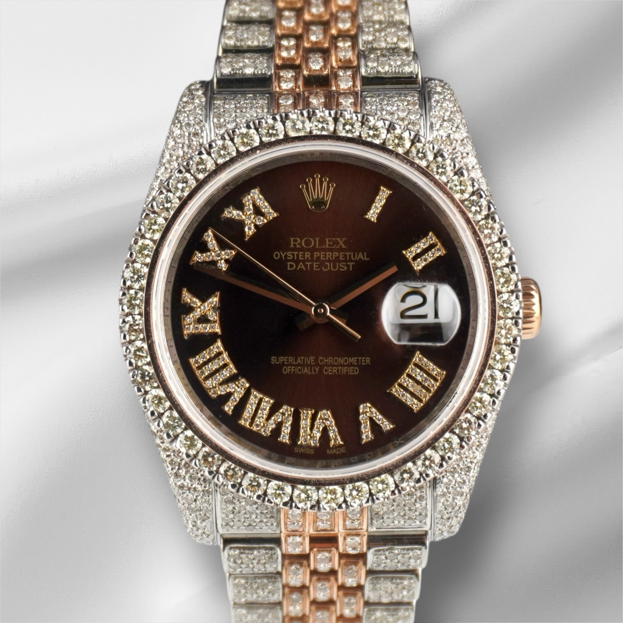 Rolex 36mm Datejust 18k Rose Gold/Steel Iced out 16ct Diamonds Roman Dial 116201