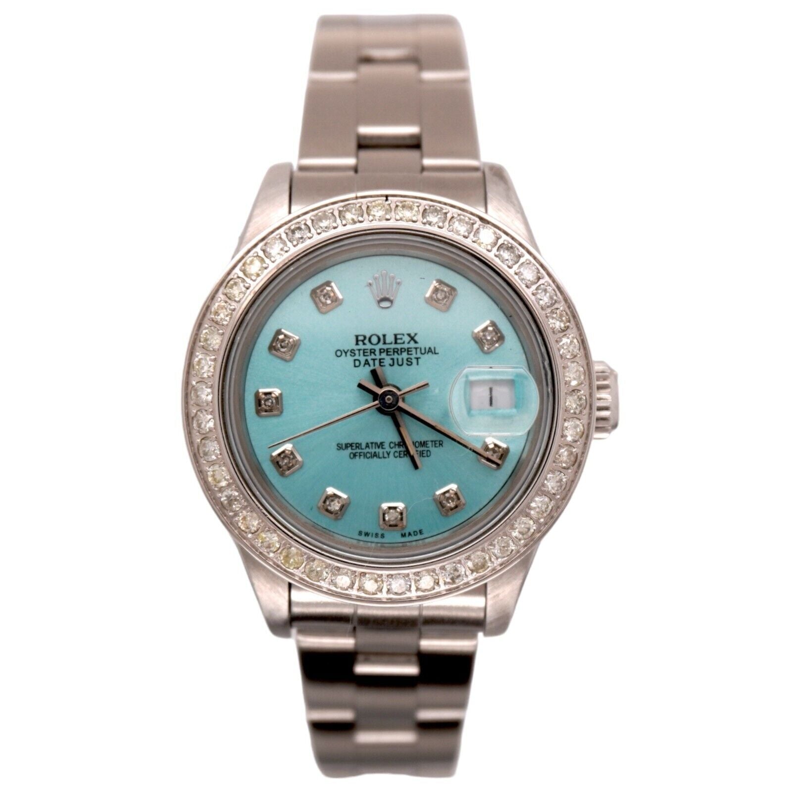 Rolex Ladies Datejust 26mm Steel Watch Oyster ICED 1.50ct Diamond Ice BLUE Dial