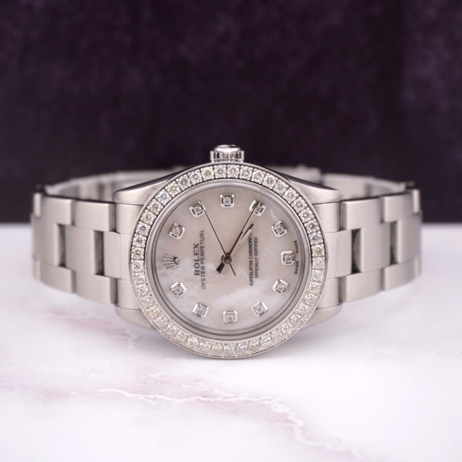 Rolex Midsize Oyster Perpetual 31mm 2ct Diamonds MOP Dial Steel Watch