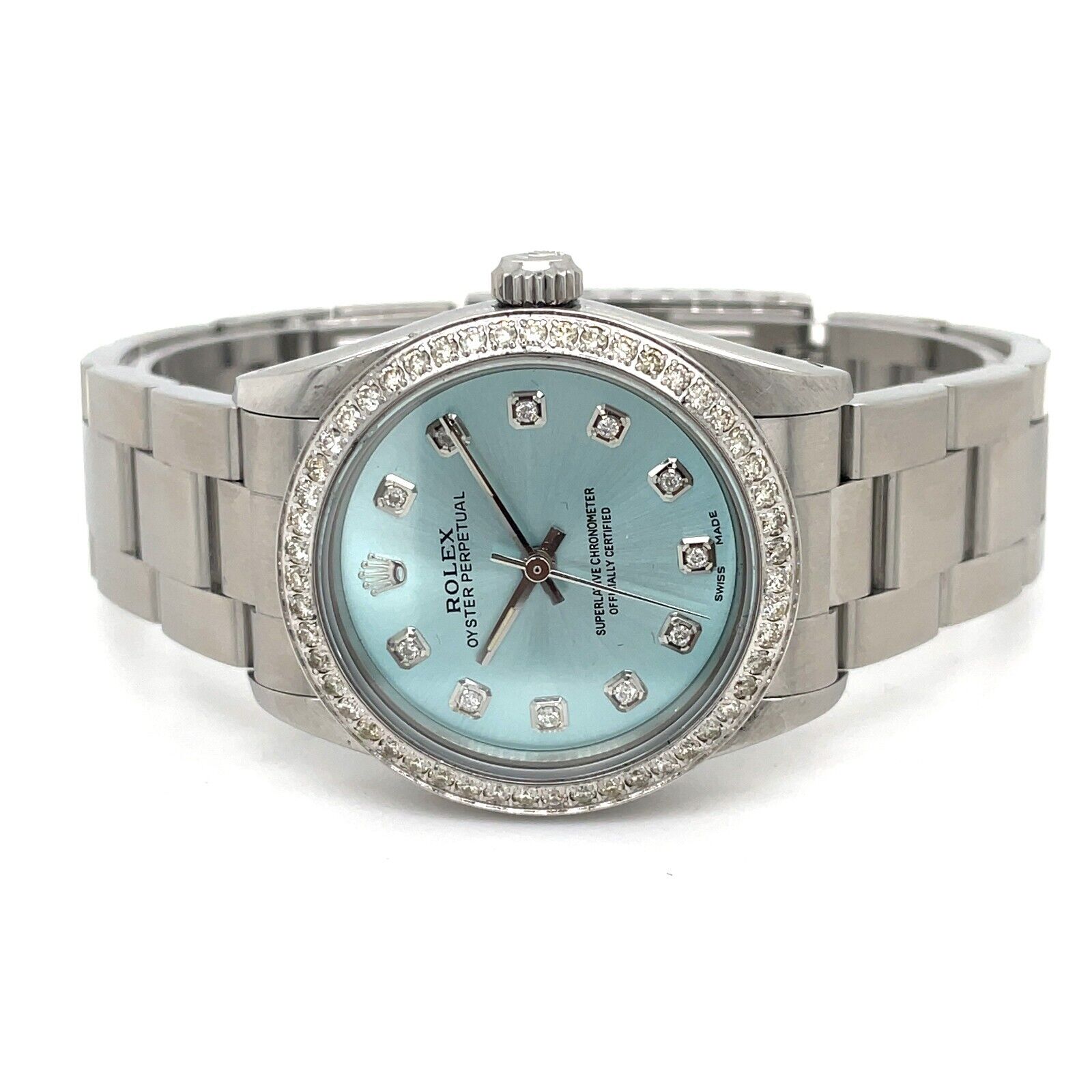 Rolex Oyster Perpetual 31mm 1.50ct Diamonds ICE Blue Steel Watch Ref 77080