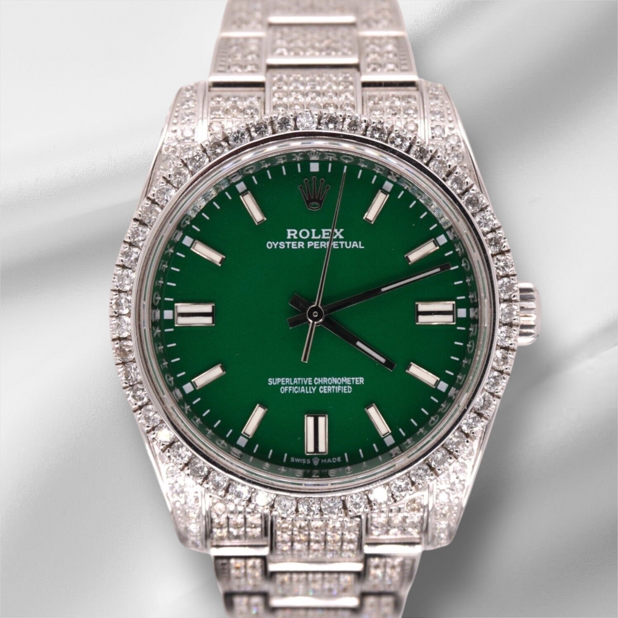 Rolex 36mm Oyster Perpetual 10ct Iced Out Green Dial Oyster Steel Watch 116000
