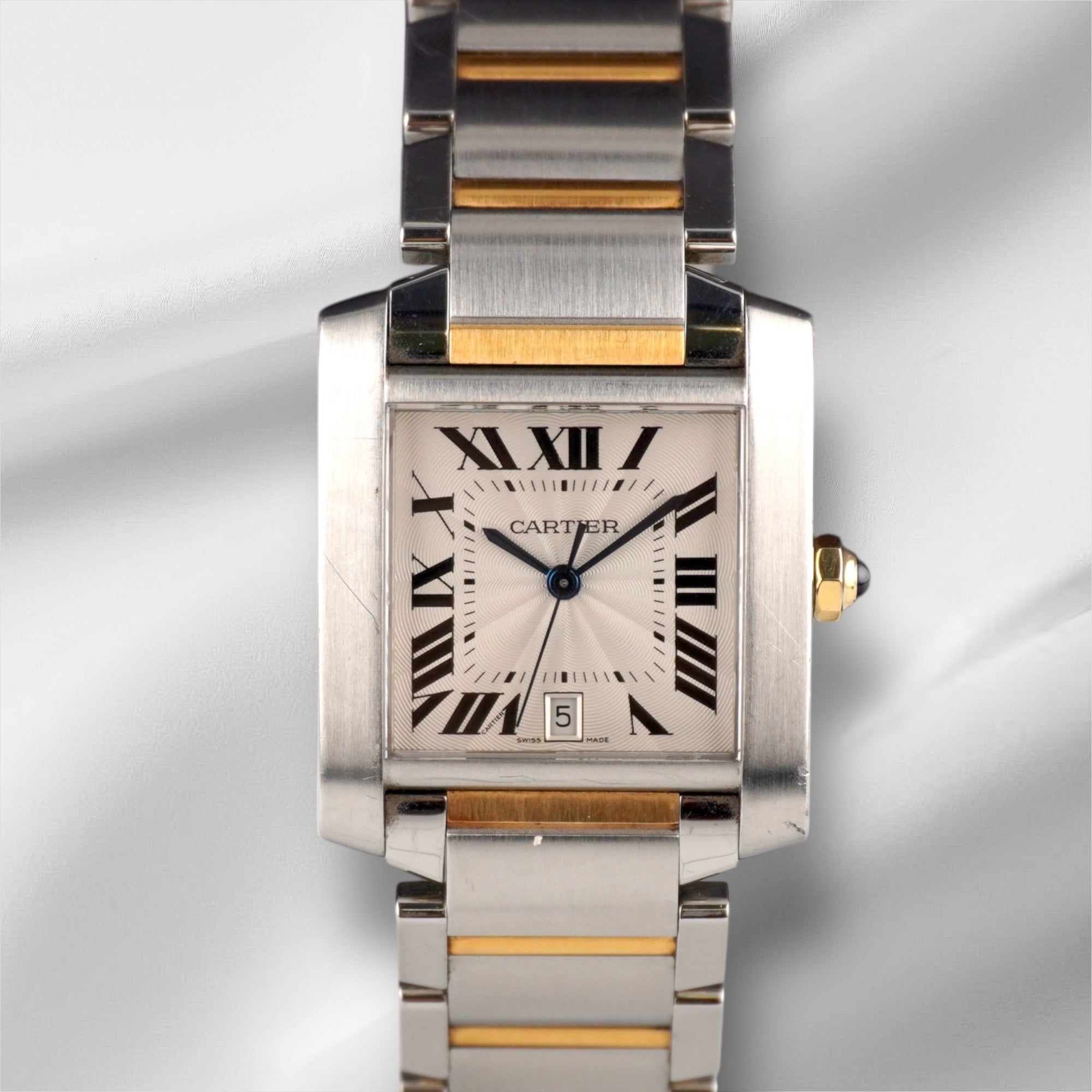 Cartier 28mm Tank Francaise Steel Yellow Gold Silver Dial Mens Watch 2302