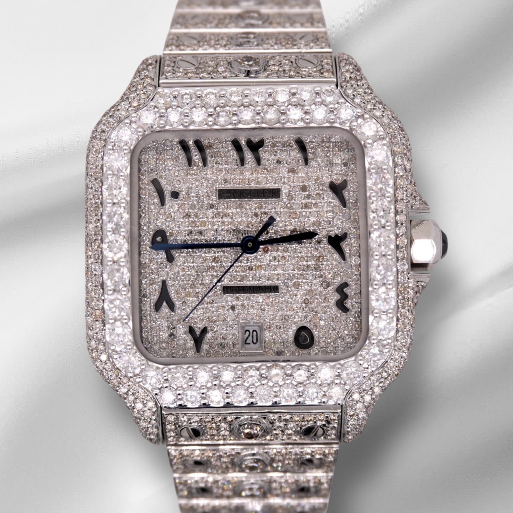 Cartier Santos 40mm Large Steel Arabic Iced 20ct Diamonds SOLITAIRE Men's Watch