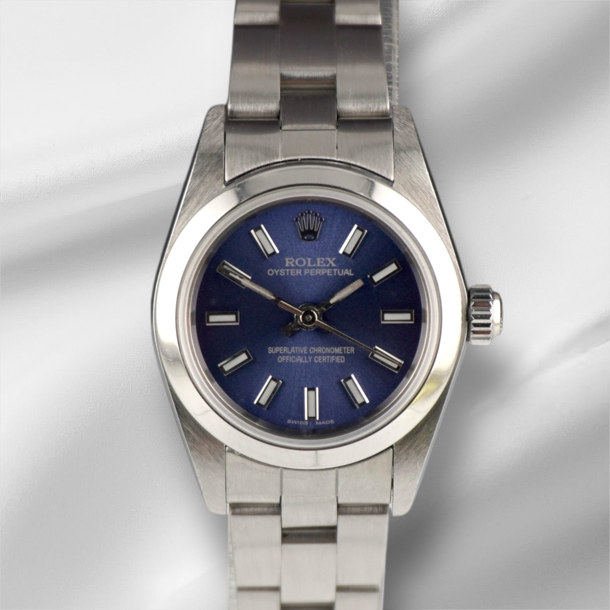 Rolex Oyster Perpetual 25mm Stainless Steel Dark Blue Dial Watch 67180