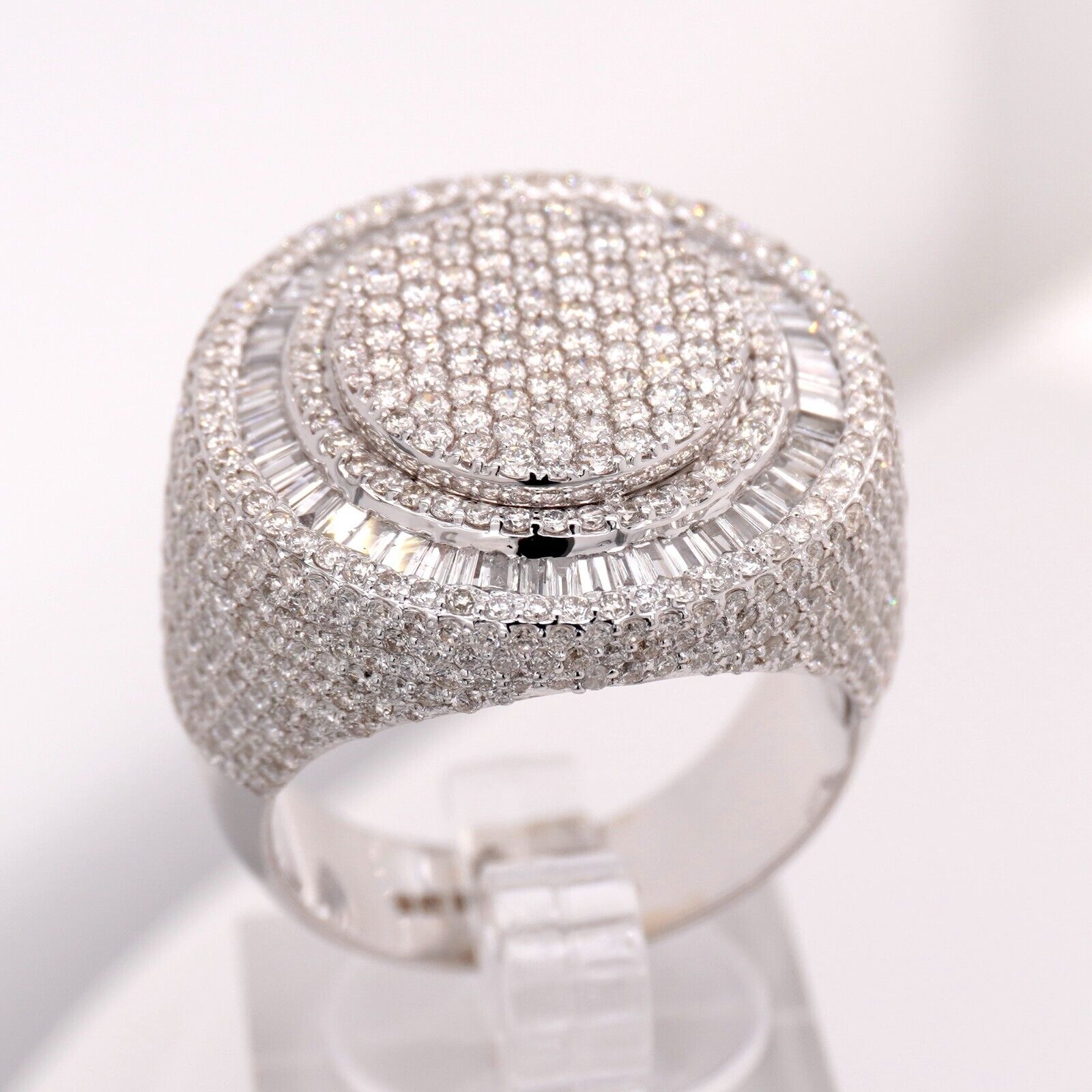| Overview | PREMIUM VS DIAMOND COLLECTION BY ICETIME- 10K White Gold Mens Natural Diamond Ring With Approximately 4.214 Carats Of Diamond And 12.49 Grams .This Hand Made Ring has been beautifully handset in white VS round brilliant cut and baguette diamonds. The diamonds are F/G in color. Available In Size 9 But Can Be Adjusted To Any Size. Comes with Authenticity Card which will have details of weight of item, diamond weight, number of diamonds, shape, color and clarity. |