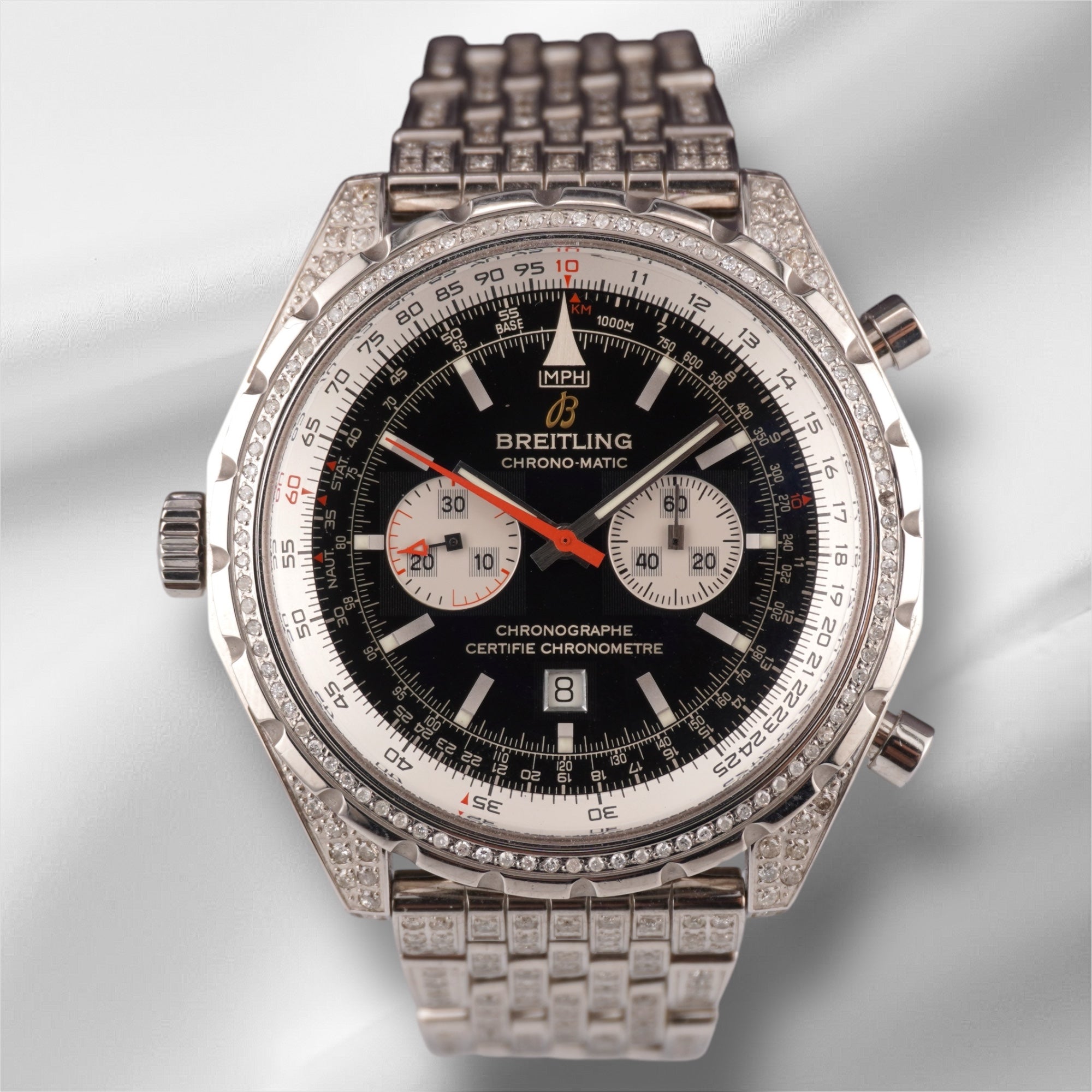 Breitling Men's Chrono-Matic 44mm 8ct Diamond Steel Black Dial Watch Ref: A41360