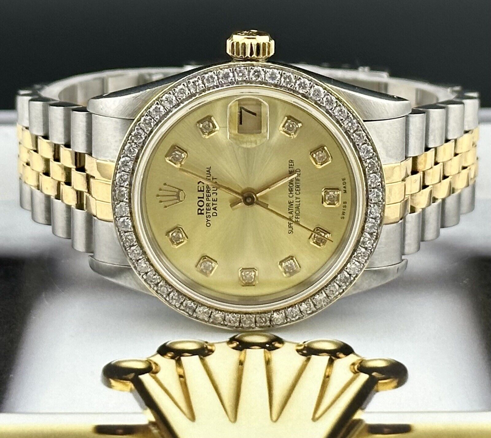 Rolex Ladies Datejust 31mm 18k Yellow Gold/Steel ICED 1.5ct Diamonds Gold Dial
