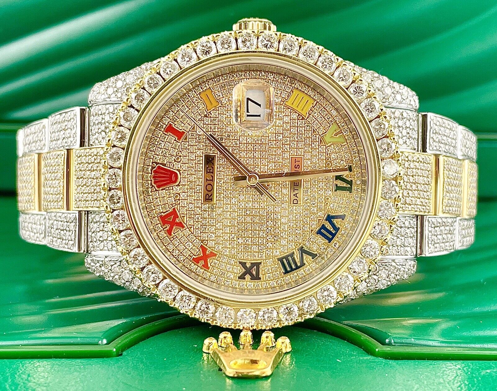 | Overview | Beautiful Honeycomb Diamond Setting! Rainbow Dial, Original Box, & Rolex Card! |