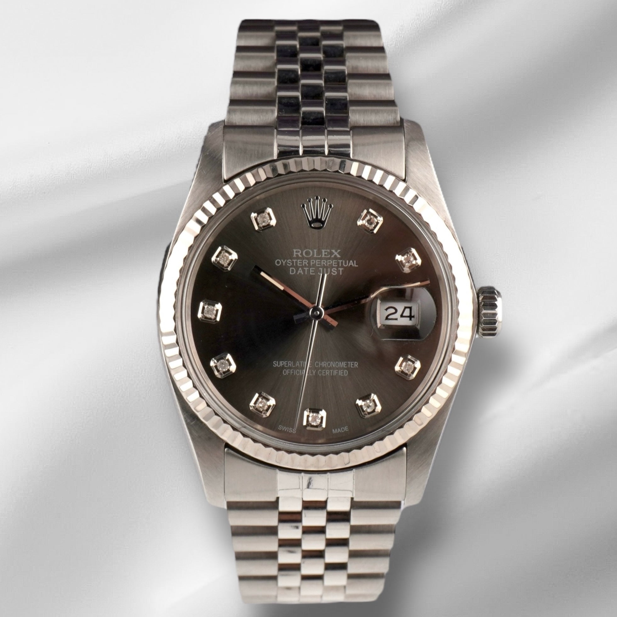 Overview | ROLEX STEEL WATCH IN GREAT CONDITION WITH CUSTOM GREY DIAL! |