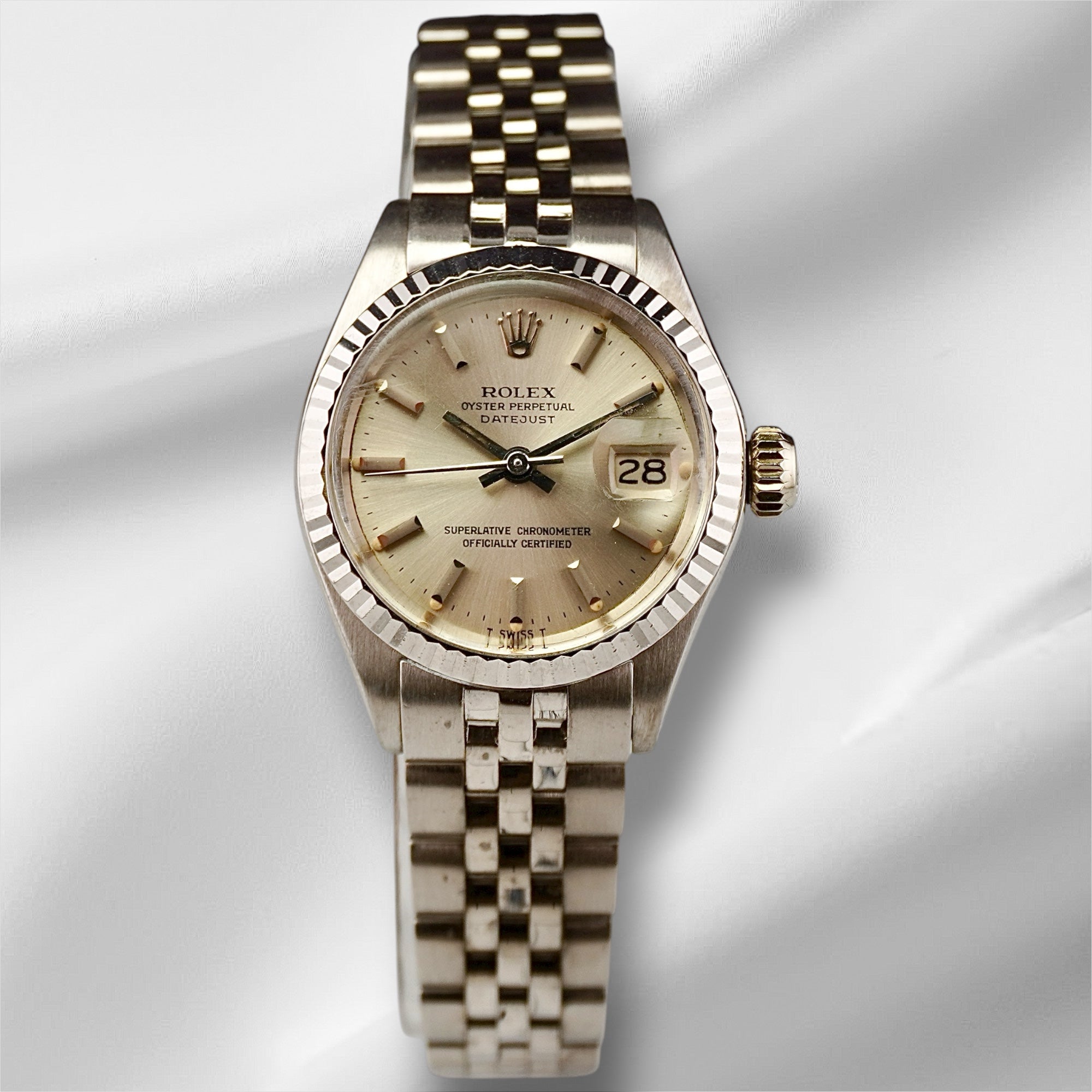 Rolex Ladies Datejust 26mm 18k White Gold Jubilee Silver Dial Watch Ref: 6917